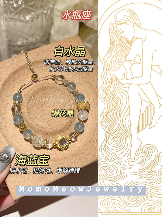Aquamarine sterling silver adjustable ring 海蓝宝开口可调节纯银戒指