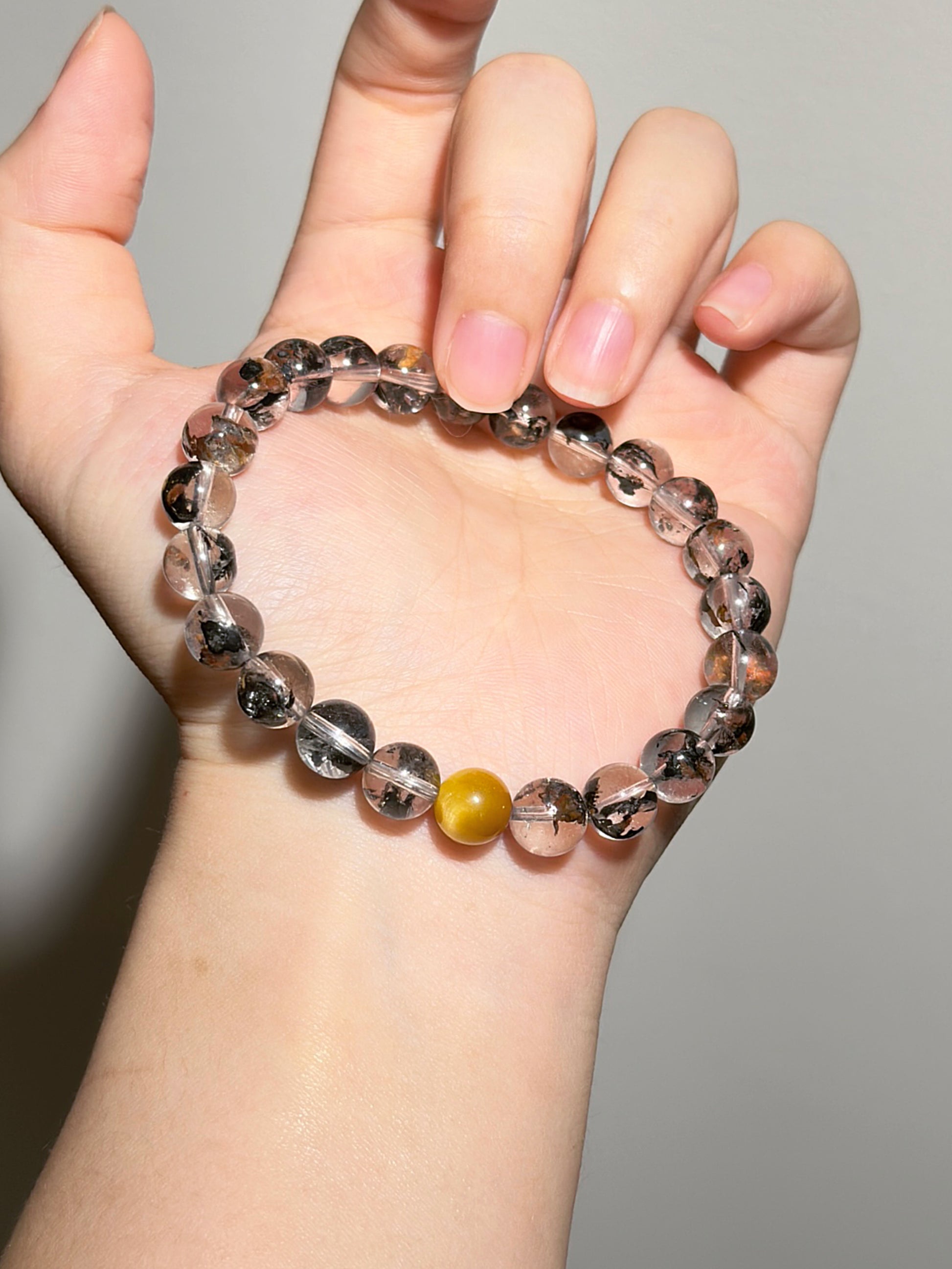 Golden night black herkimer gold tiger’s eye bead bracelet